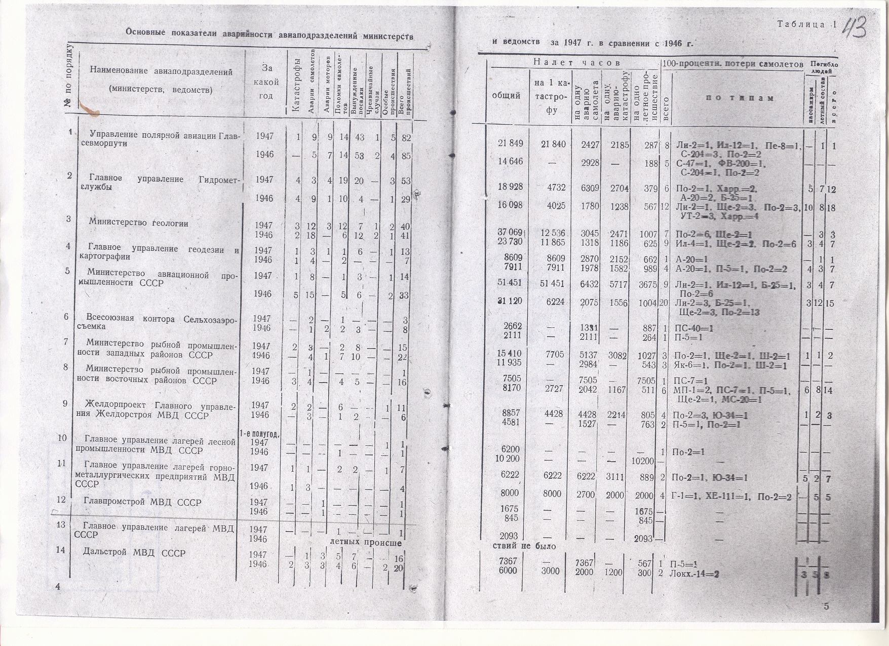 В Экономическом Архиве на Б.Пирогвке нашел донесение "Основные показтели аварийности авиаподразделений министерств и ведомств за 1947 г. в сравнении с 1946 г. таблица 1. Фонд 3527, опись 2, Ед. хр. 175, стр. 43. Сдесь информация косвенно подтверждающая слова отца. Но документов к этой таблици найти не удалось. Сдесь сказано п.12 Главпромстрой МВД СССР авария моторов 1946 год одна 1947 год одна. Всего проишествий 1- 1946, 1-1947. общий налет часов до поломки 1946 г.-1675, в 1947-845 часов. Погибших нет. Тип самолета не указан. Похоже это искомый самолет. Кто может сообщить что либо, пишите