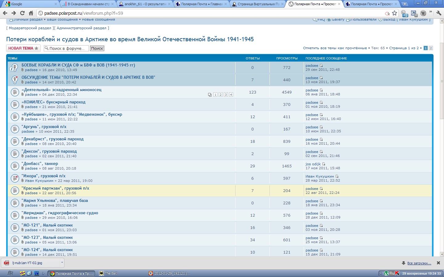 За первое - персональное спасибо! Завтра начну забивать. Правда, встанет проблемка с сществющей темой ледокола "А. Сибиряков". Ну, это решим.