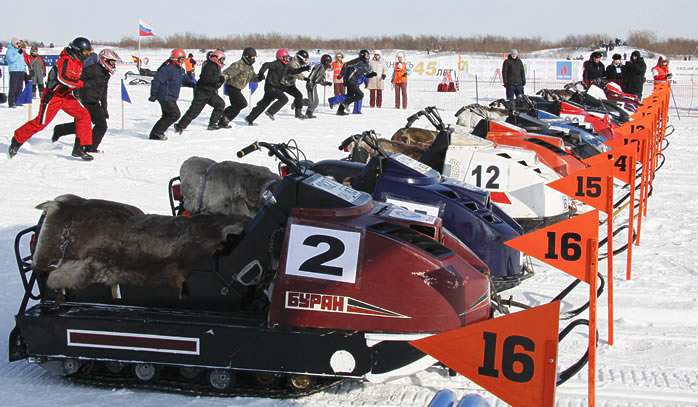 В тундре снегоход - самое надежное транспортное средство, неутомимый помощник оленевода, рыбака и охотника. Еще в 70-е годы наш округ стал первым полигоном для испытаний снегоходов "Буран". При численности населения в 48 тысяч человек за это время в округе было продано более 14 тысяч "Буранов". Без снегохода не обходится, пожалуй, ни сельская семья, ни промысловик, ни фермер.
