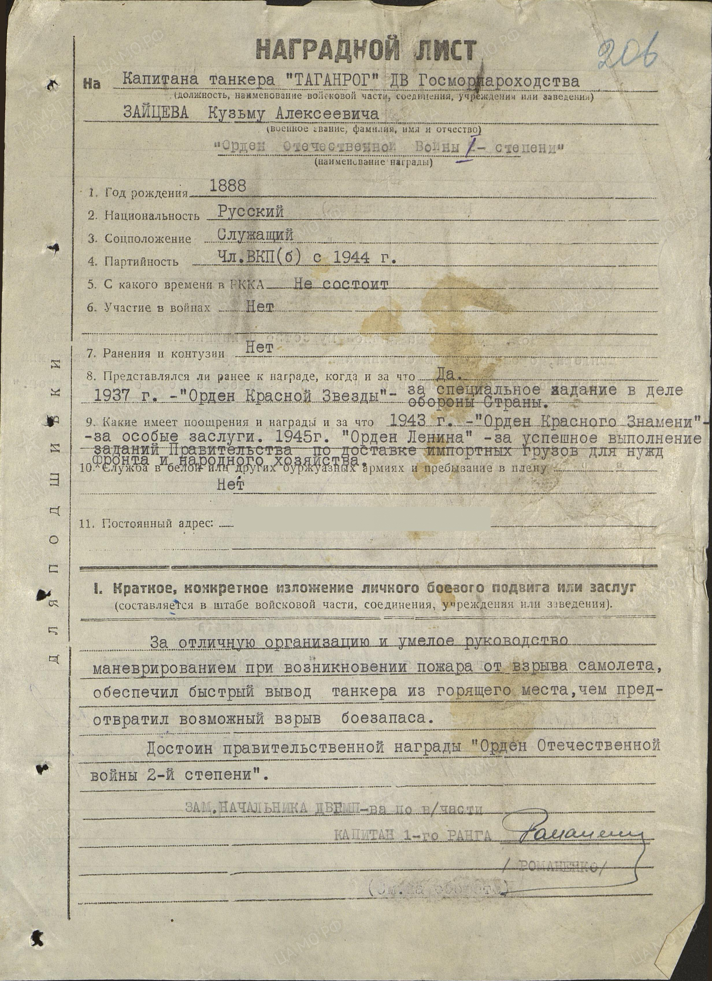 Качество очень плохое. Здесь он капитан танкера Таганрог во время войны