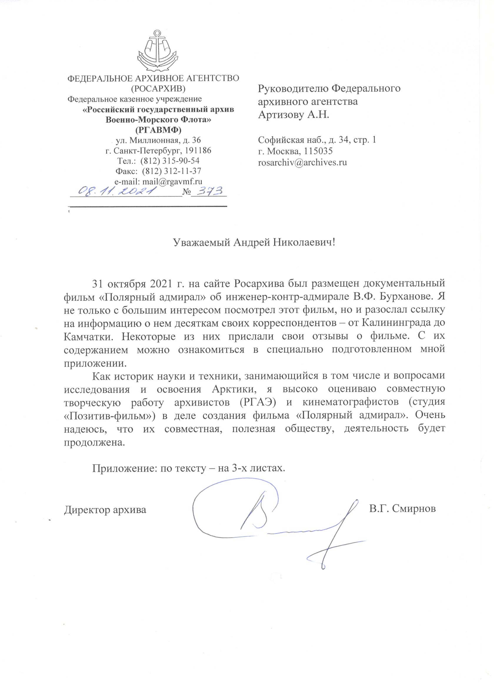 Уважаемые коллеги, с радостью хочу сообщить, что выставка в ЦМ ВС работает, а на днях мы закончили работу над фильмом о В.Ф. Бурханове "Полярный адмирал". О показах сообщу дополнительно. Также о В.Ф. Бурханове можно посмотреть на нашем сайте www.geroisevera.ru там обнаружились кое-какие ошибки - исправим.