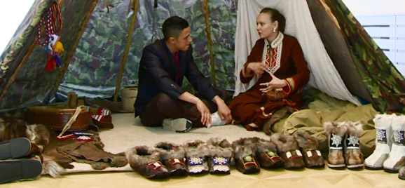 — Вот эти штаны сшил я. Я около месяца их собирал, думал что, как... А потом разозлился и за один вечер сшил, — рассказывает один из представителей саамской делегации.