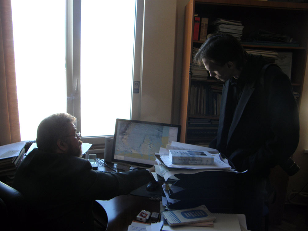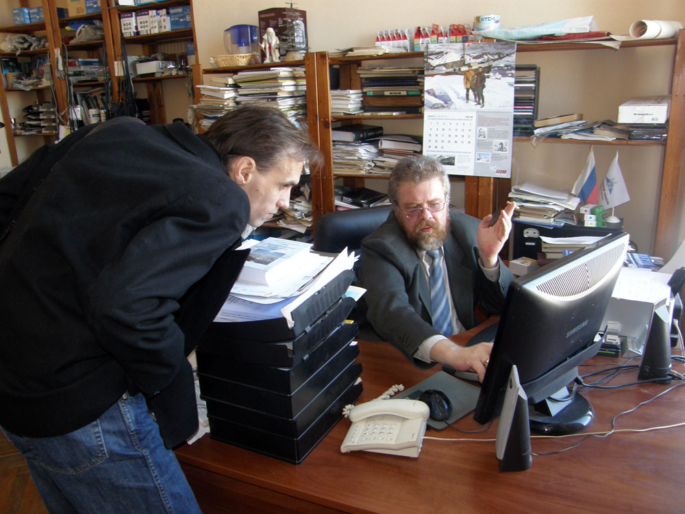 Бывшие на юбилее участники "Полярной Почты" около 4 часов пытались собраться вместе для снимка, но постоянно терялись выдергивыемые многочисленными давно не виденными друзьями и коллегами - и наконец, когда праздник был практически завершен, собрались в лаборатории ледовой разведки у S.V.F - к сожалению потеряв в ходе неистового празднования Большого. Что произошло с RUS - я так и не понял. Толи он потерялся, то ли так и на нашелся