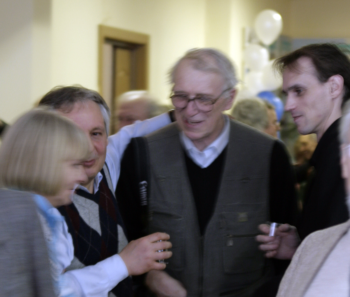 Все это плавно перетекло в неформальный праздник, на котором рябило в глазах от многочисленных значков "почетный полярник", "участник СП", "Участник САЭ" и многочисленных обниманий всех со всеми.