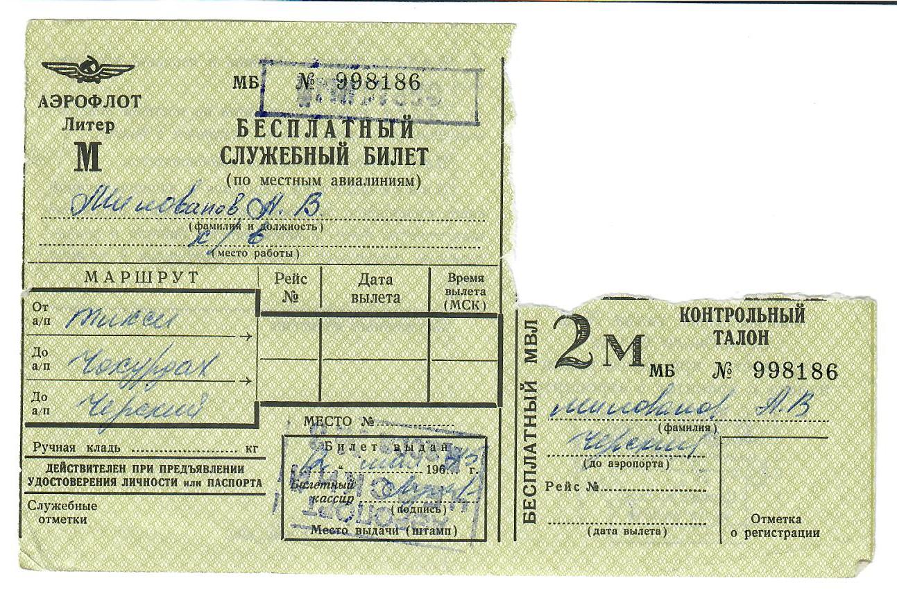 По просьбе Oleg1969 вставлю сохранившиеся авиабилеты ещё Нижне-Колымского ОАО Полярного управления, когда я переучивался с Ми-4 на Ми-8 на Украине в Кременчуге. А также те, когда работал в командировке в Тикси и летал домой в Черский через Чокурдах. Также и с Чокурдаха в Черский. Раньше ведь самолёты летали регулярно. Практически каждый день и не редко в день по не одному рейсу. Так что в этом отношении проблем не было. Работали по командировкам в отрыве от базы, но и дома бывали.