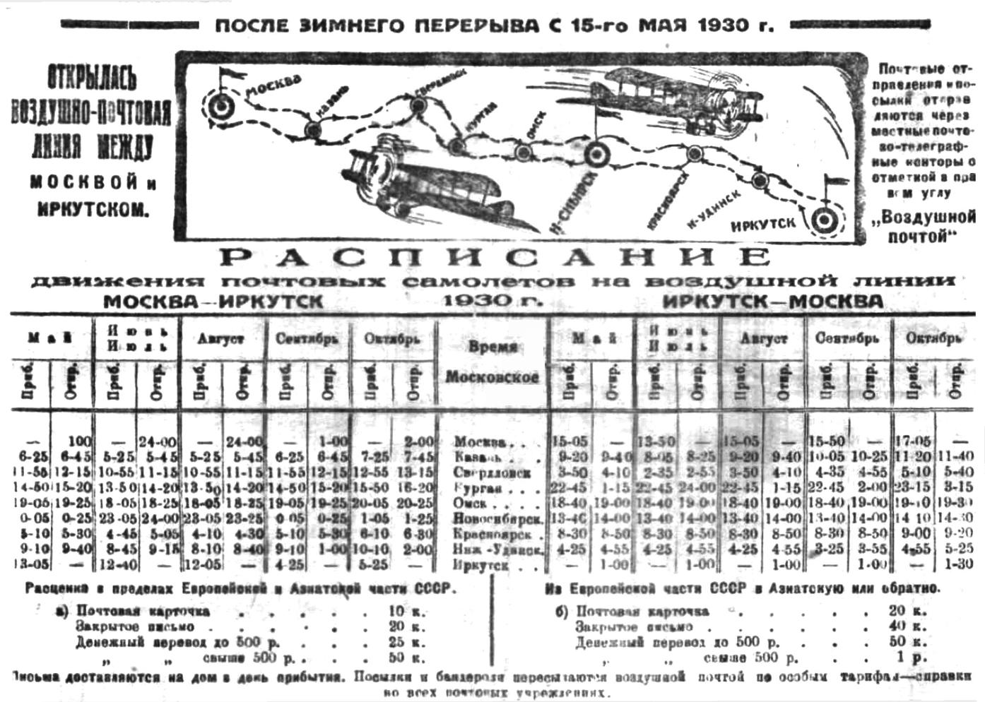 63. Перечень воздушных линий, существующих в 1930 г. (в том числе по Восточно-Сибирскому управлению). Копия. 1931 г. ф. 9527, оп. 1, д. 213, л. 34.