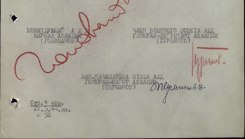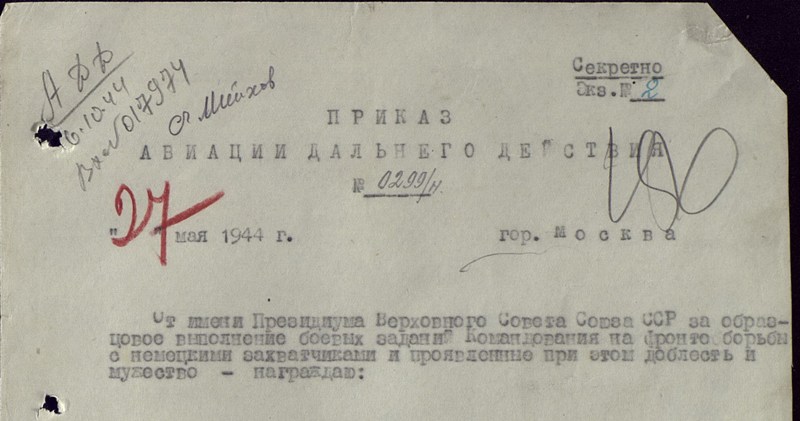Приказ подразделения № 299/н от: 27.05.1944 АДД