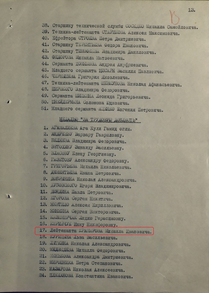 Переходящим вымпелом Совета Министров СССР и первой премией награжден экипаж корабля, где командиром Михаил Иванович Крамаров. Это не первая производственная победа экипажа. Ему и раньше присуждалось одно из первых мест во Всесоюзном социалистическом соревновании и на всем протяжении прошлого года сохранялось звание «Лучший экипаж управления». План первого квартала 1953 года экипаж выполнил на 135 процентов.