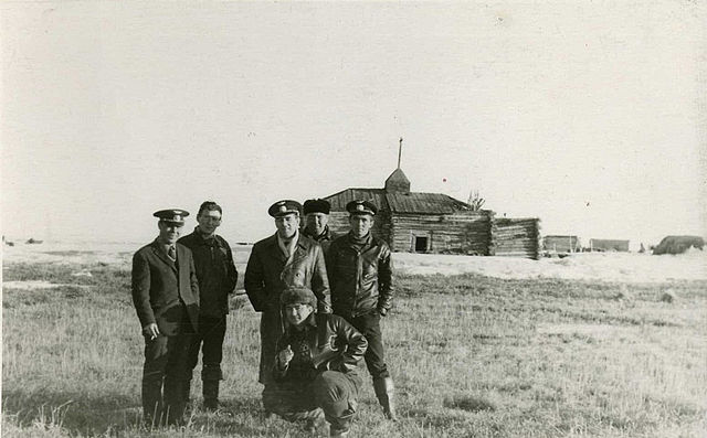 Район Чокурдаха, на берегу р. Индигирка, Русское Устье ,Станчик. Экипаж Ми-4. Слева ЗКАЭ Юрий О. Добротворцев, Адольф Милованов, замполит НК ОАО И.И. Тютюнькин, Резников Т.А., б.м Шерстюков В.Н. Из архива Адольфа Милованова, "Одноклассники"