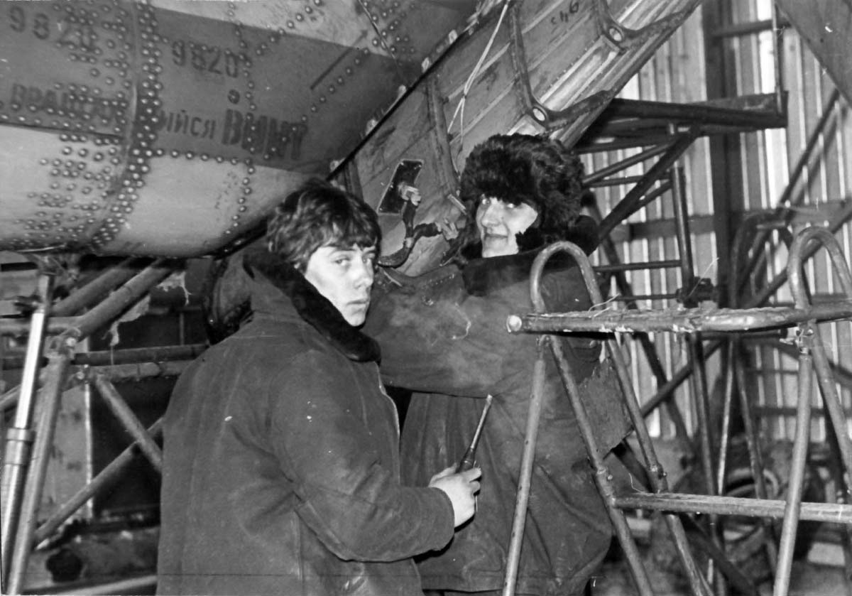 Нашел ответ на свой же вопрос, спасибо Чикачеву Вениамину Ивановичу. Фото середины 1980-х годов, сделан в Чокурдахе. Вертолет обслуживают авиатехники Чокурдахской АТБ А. Сенчук и С. Василевский. В 1983-1984 гг. Чокурдахская ОАЭ получил от ВВС, из Камчатки, вертолет Ми-8 с окончанием бортового номера на «45». К сожалению полный номер не вспомнил.