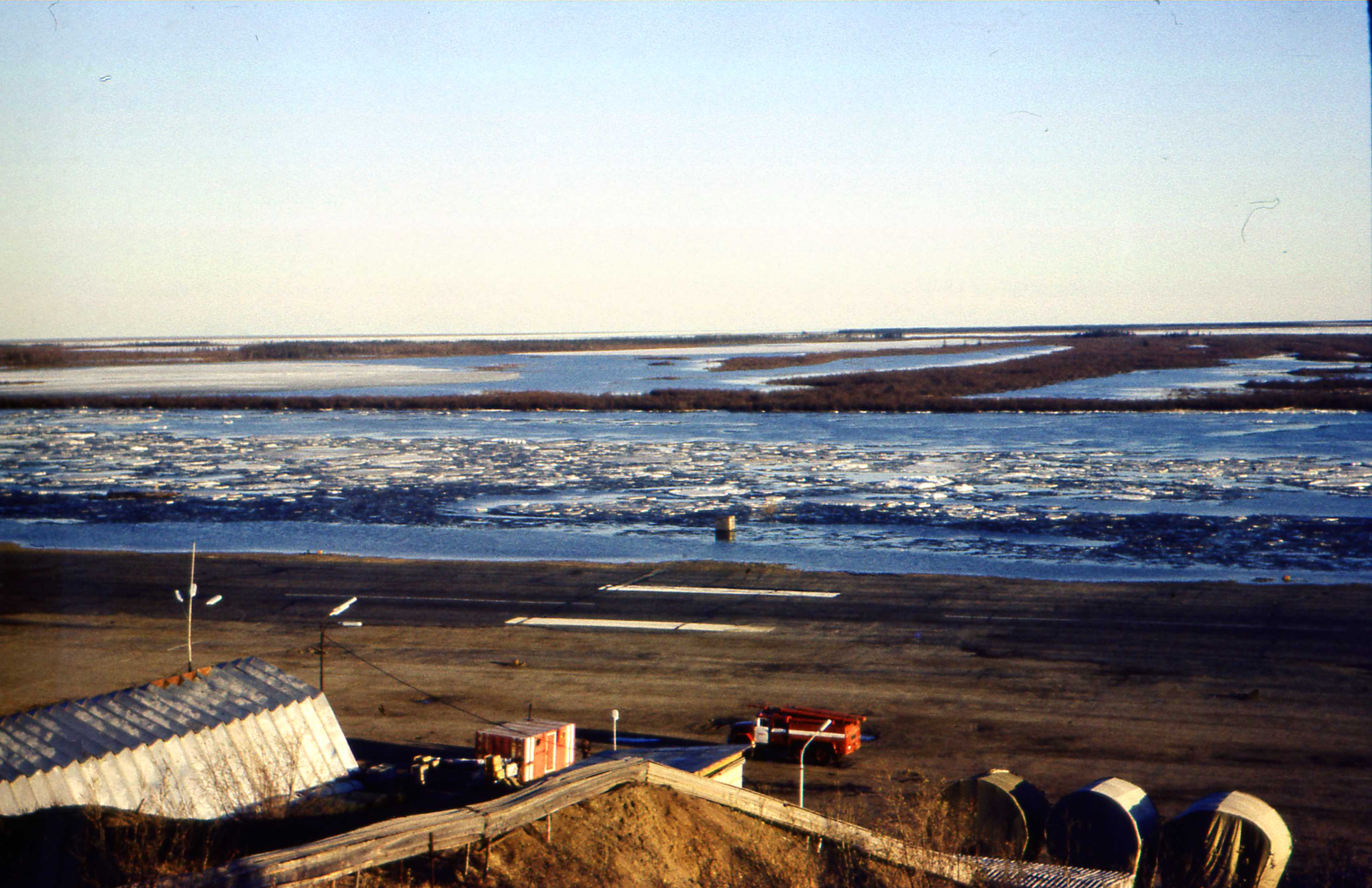 Ледоход на р. Пантелееха. Колыма еще не пошла. Лед подпирает, вода поднимается и заливает полосу.