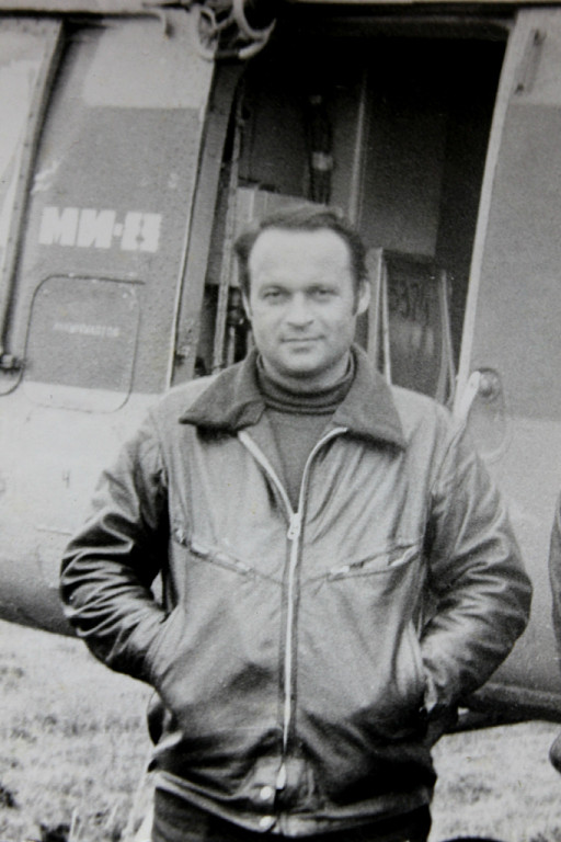 Валерий Новгородцев командир Ми-8 у борта Ми-8 СССР-25374.