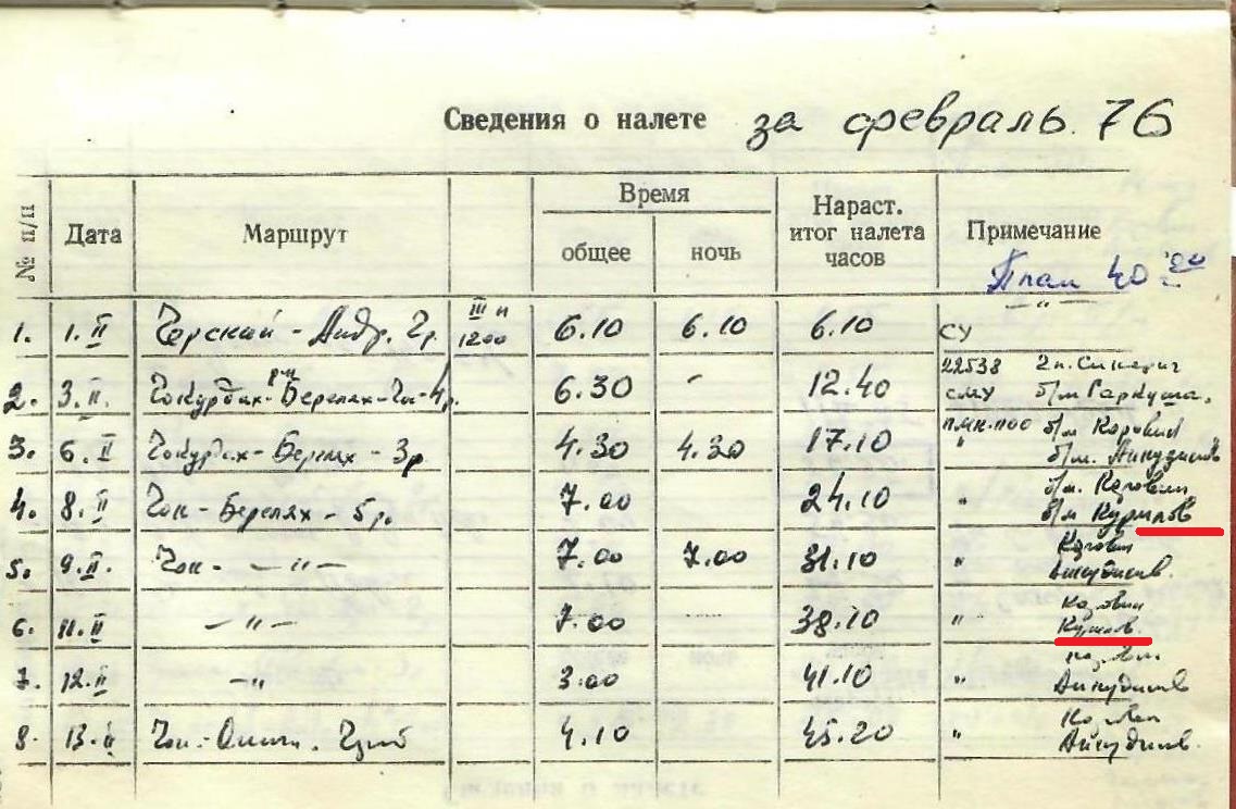 Курилов Анатолий Логвинович. Работал инженером ОТК в АТБ аэропорта Чокурдах. Переучился на Б/механика и летал в составе экипажа Ми-4.