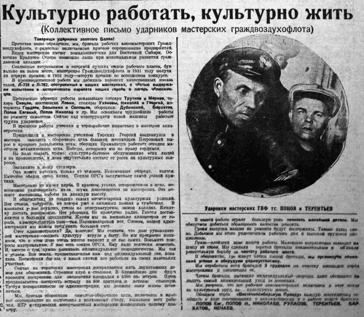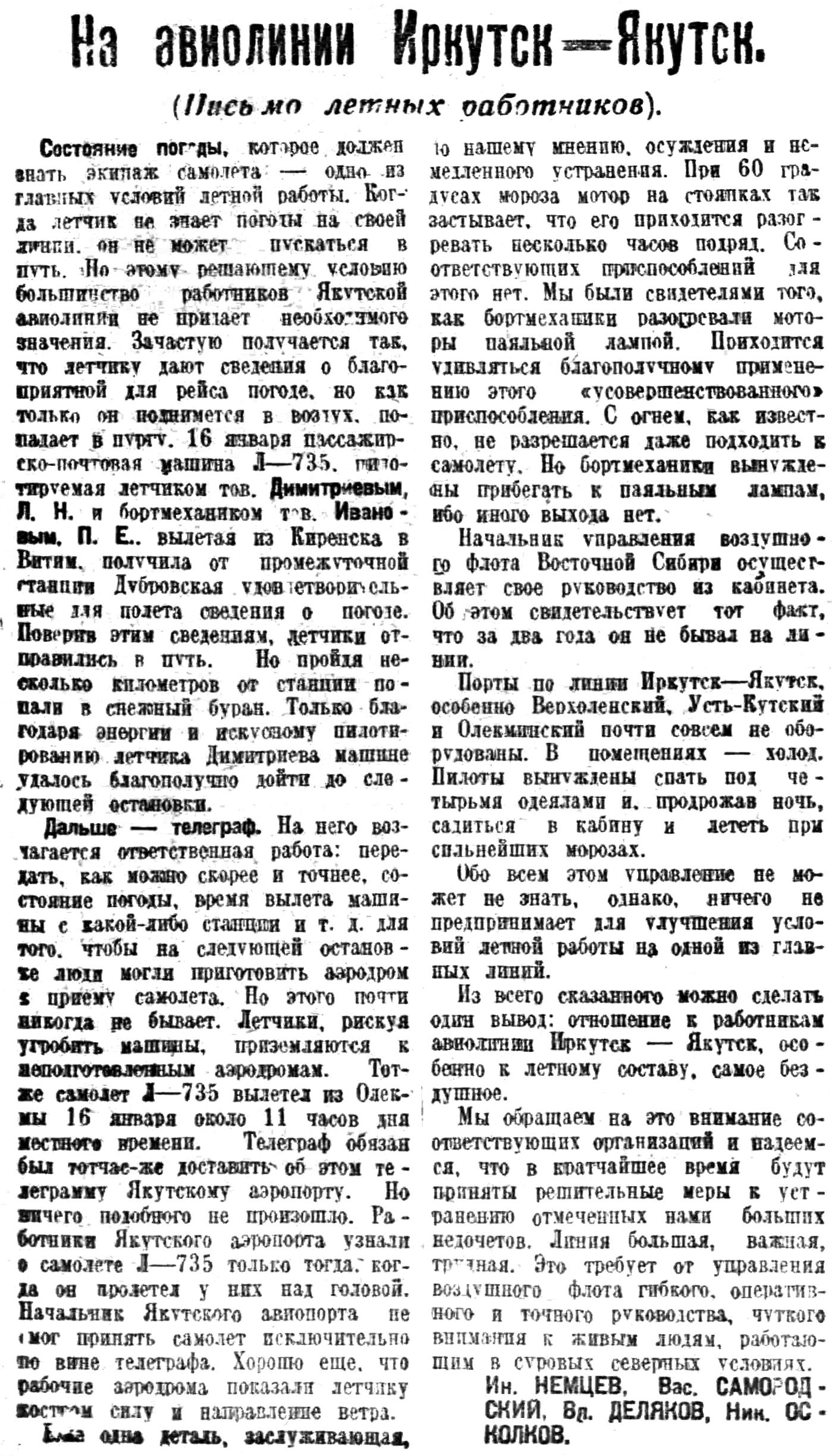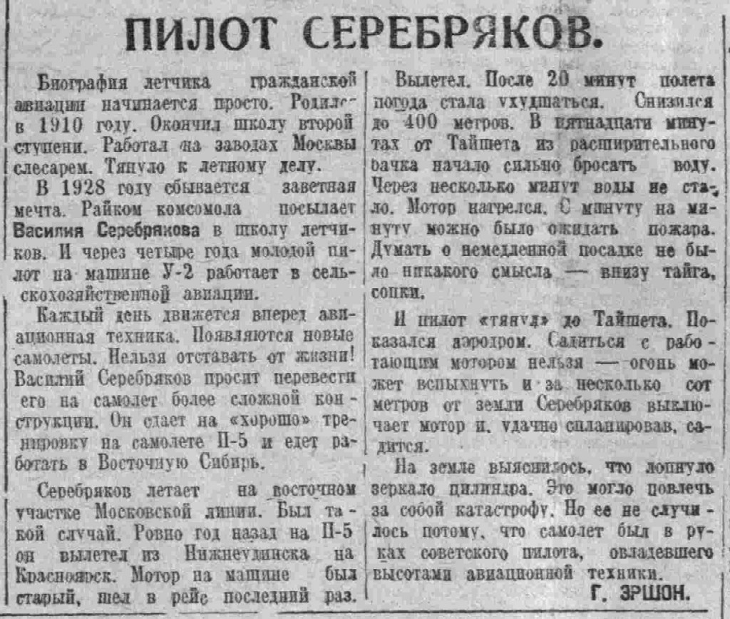 Любимый друг и товарищБортмеханик тов. ПобежимовВасилий Сергеевич Молоков — мой старый друг и товарищ. Мы с ним долго работали вместе. Еще в 1918 году встретились с ним на фронте в боевой обстановке. Тогда, в период упорных боев с врагами под Самарой, Нарвой, на северном фронте Молоков весь отдавался борьбе. Числился он механиком, но всегда был в первых рядах.