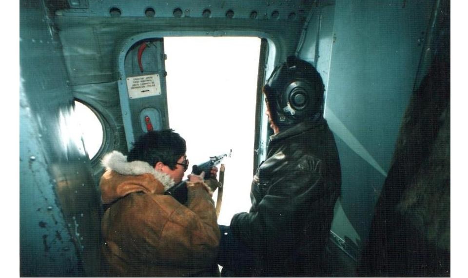 Ми-8 на отстреле волков. Б/механик Е.Лебедев (справа). Слева видно отгороженное место б/радиста.