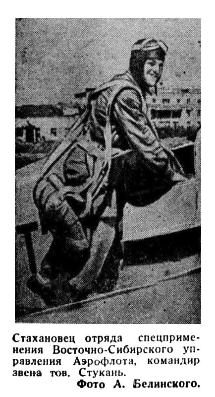 Стахановец отряда спецприменения Восточно-Сибирского управления Аэрофлота, командир звена тов. Стукань.
