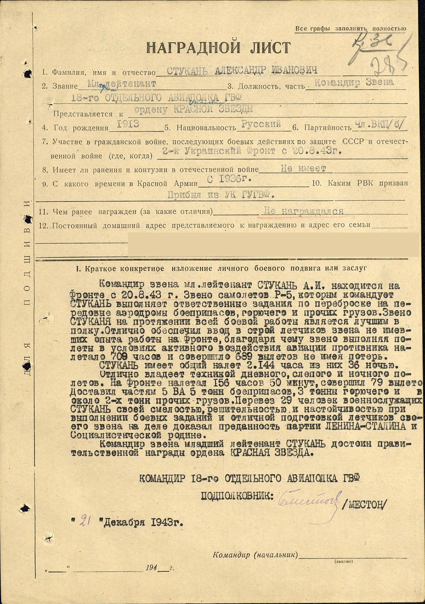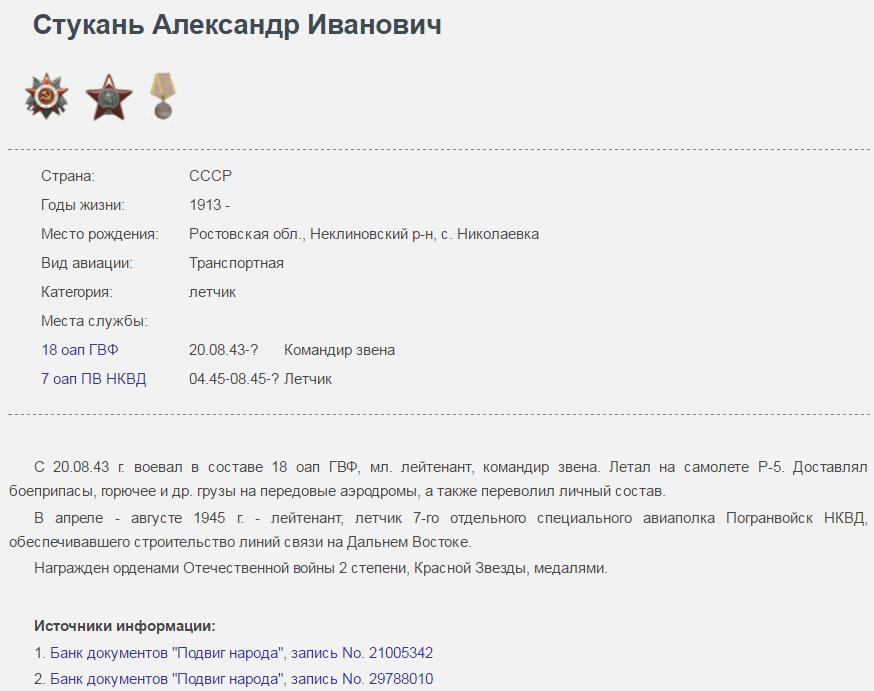 Стукань Александр Иванович (1913-?), летчик ВСУ ГВФ