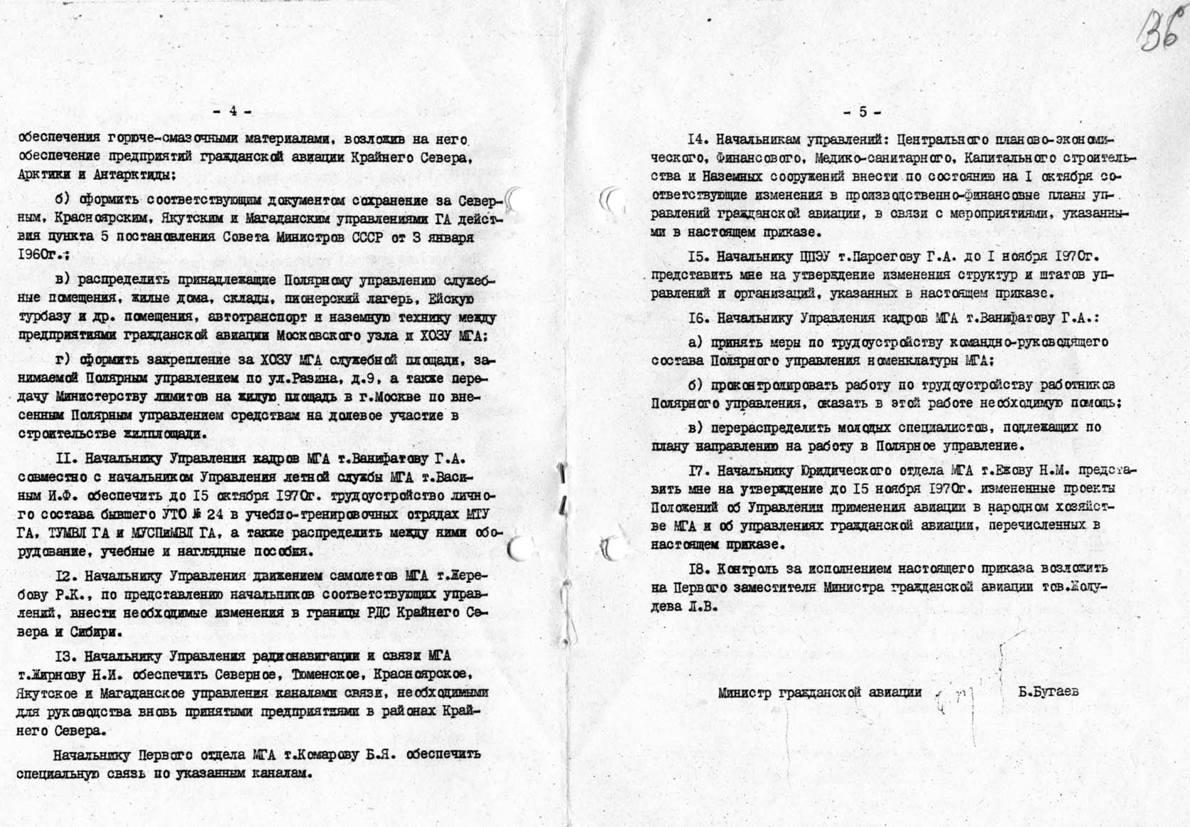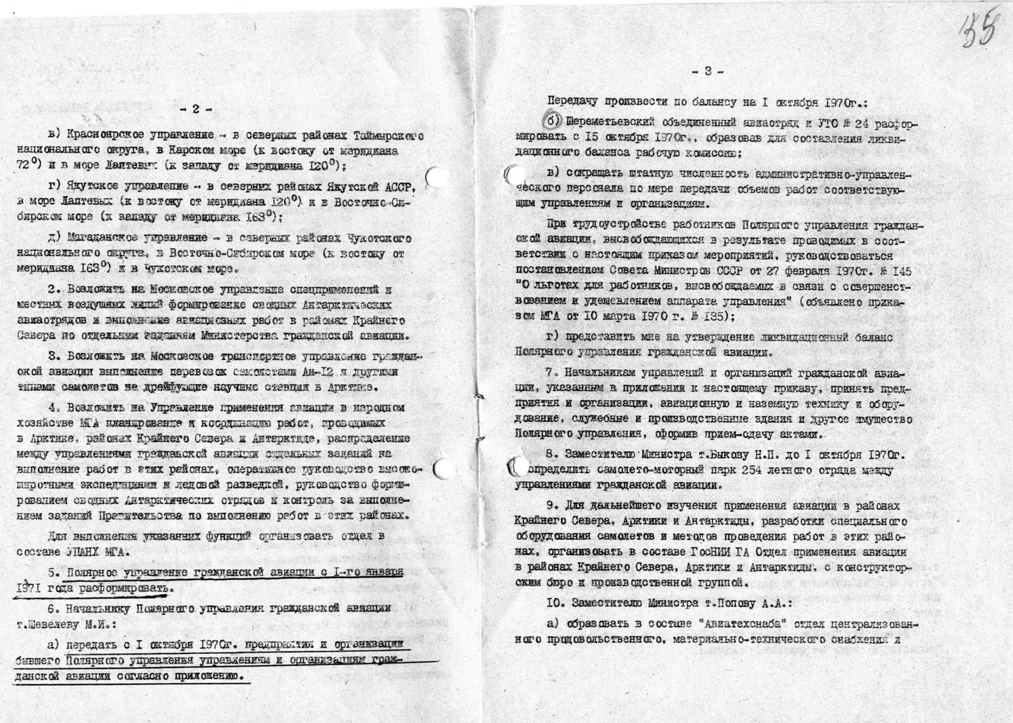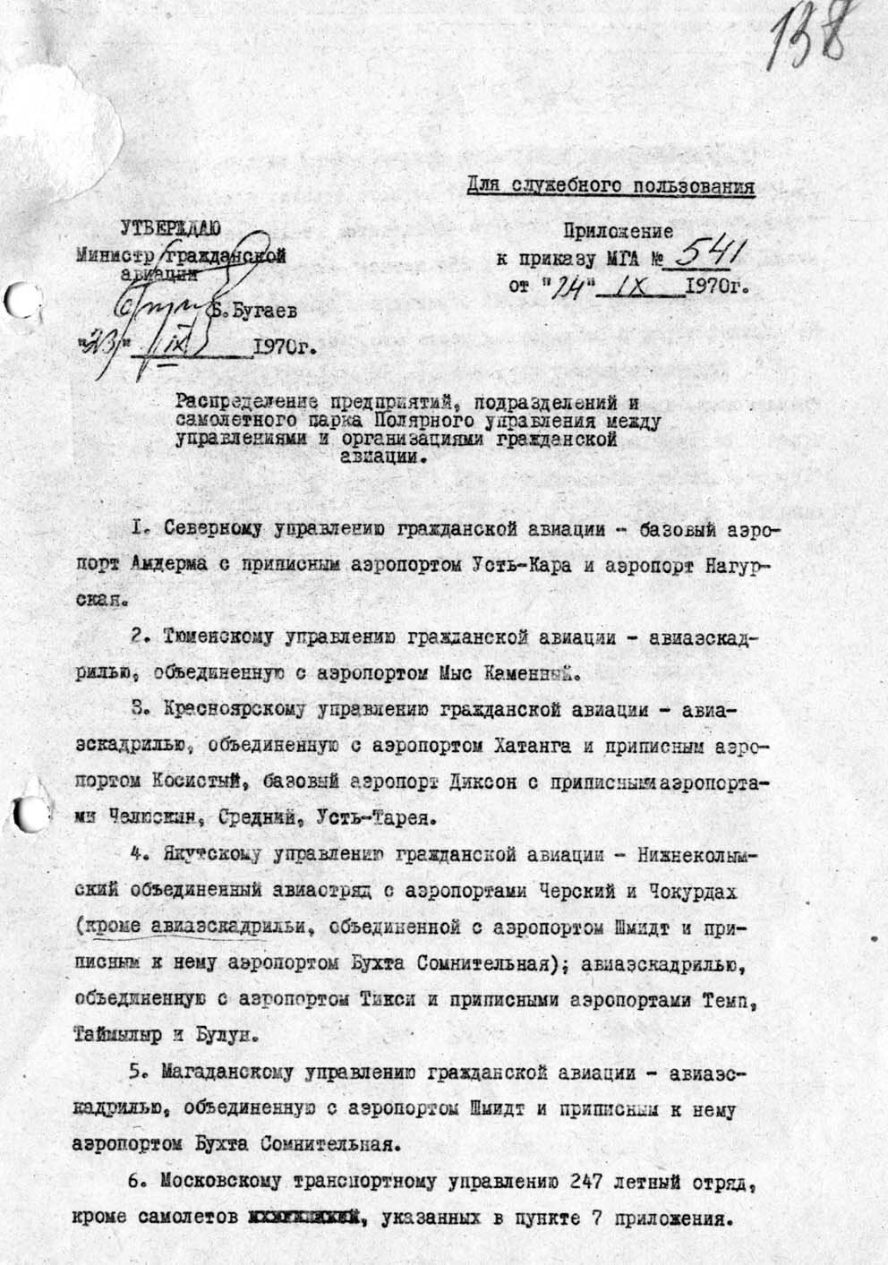 Приказ Министра ГА СССР № 541 от 24 сентября 1970 г "Об улучшении руководства авиационным обслуживанием районов Крайнего Севера, Арктики и Антарктиды".