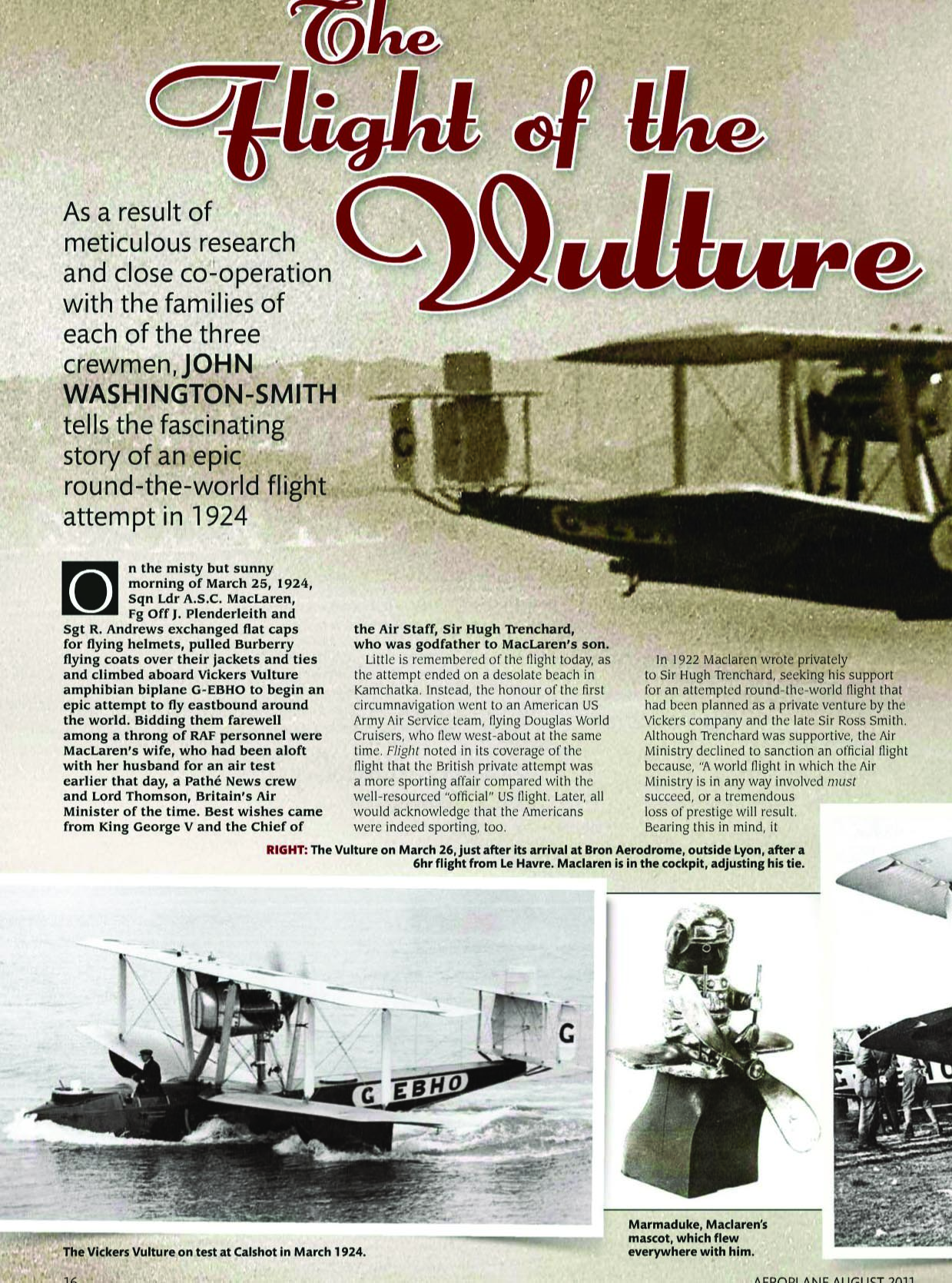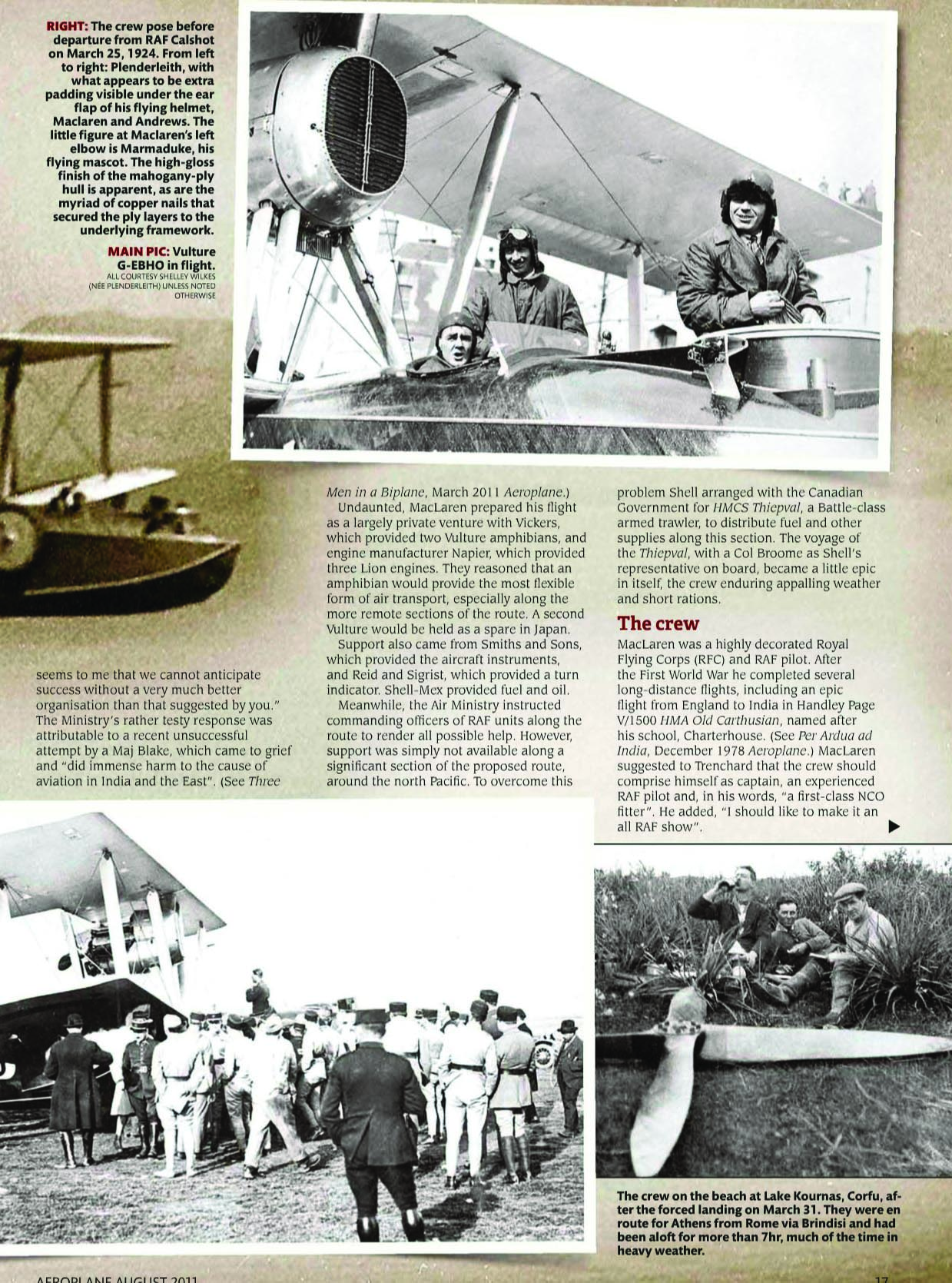 Было подготовлено два самолета: G-EBHO и G_EBGO. Из Англии вылетел борт G-EBHO, G-EBGO был отправлен как резервный в Японию. В Бирме, при взлете в заливе Акьяб, "основная машина" (борт G-EBHO) был разбит, запасную доставили из Токио. Кончилось, правда, не очень - на посадке в Никольском, 2 августа 1924 года, самолет G-EBGO был так же разбит. Видимо, фото сделано именно там.
