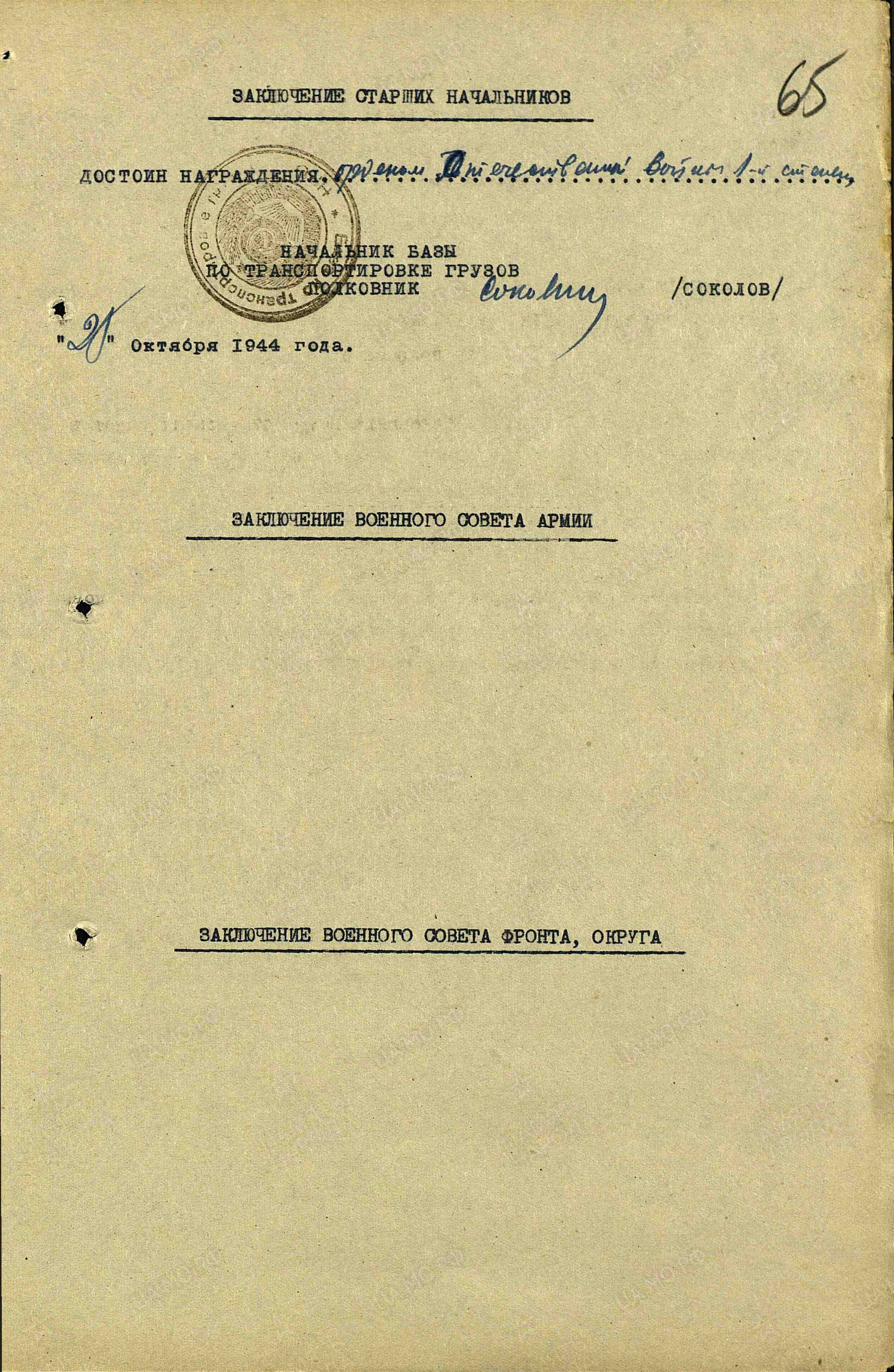 Награды: орден Красного Знамени, Красной Звезды, Отечественной войны I ст., медали «За оборону Москвы», «За победу над Германией в Великой Отечественной войне 1941-1945 гг.».