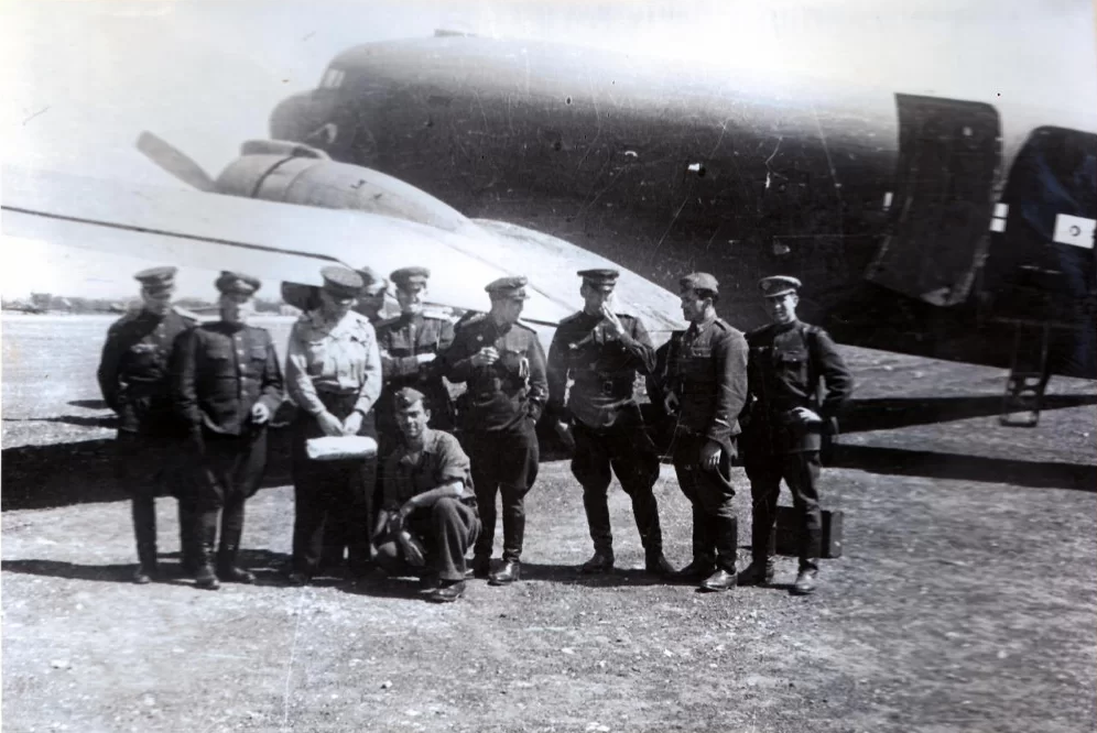 Советские лётчики АГОН с югославскими партизанами на аэродроме в Бари. Крайние три снимка из уникального фотоальбома «Авиагруппа Особого назначения в Италии, г. Бари». Из фондов «Музея истории района Внуково» -