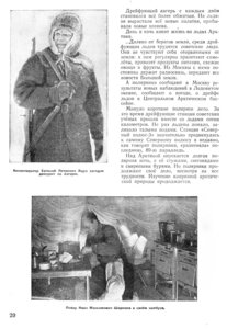 Мы шагаем за окраину лагеря, туда, где двумя рядами флажков размечена посадочная полоса. Ломами и пешнями скалываем ропаки, лопатами срезаем острые снежные заструги и покатые надувы. И в этой изнурительной работе Курко неутомим. Шагая впереди, он частенько оглядывается, строго проверяя, как расчищает лед каждый из нас. Вот с неба доносится все усиливающийся рокот моторов. Все более и более снижается самолёт, касается лыжами нашей посадочной полосы и, вздымая клубы снежной пыли, проносится мимо нас. Правда, кое-где он все-таки подпрыгивает на неровностях снега. Выходя из кабины, пилоты И. С. Котов и А. Н. Пименов здороваются с нами.