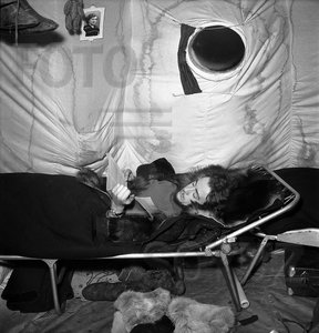 Научно-исследовательская дрейфующая полярная станция "Северный Полюс-3". После трудового дня. Завтра снова на вахту (аэролог Игорь Цигельницкий). Апрель 1954