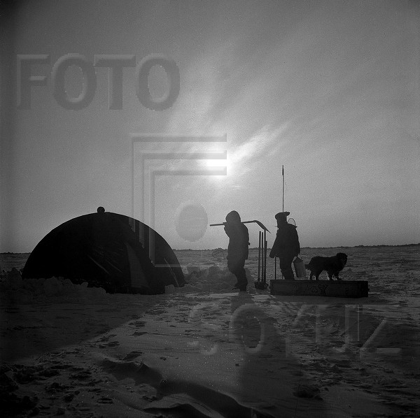 Научно-исследовательская дрейфующая полярная станция "Северный Полюс-3". Утром на работу. У гидрологической палатки. Апрель 1954
