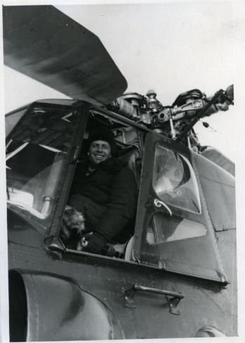 Капитан Бабенко А.Ф. на "СП-3" в кабине вертолёта Ми-4 (заводской №0207, затем - Н-207). 1954 г.