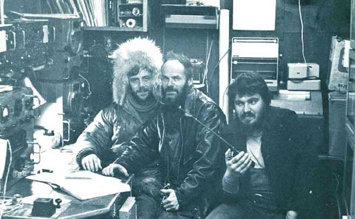 Неправда ли знакомые лица?<br />Но снимок сделан на пол-года позже предыдущего, в зимний завоз 1995 года.<br />Паша Попов - метеоролог,<br />Борис Суров - радист группы РП КИОАО,<br />Анатолий Стоялов - заврадио СП-27.<br />Радиорубка. : СП-27 -007.jpg