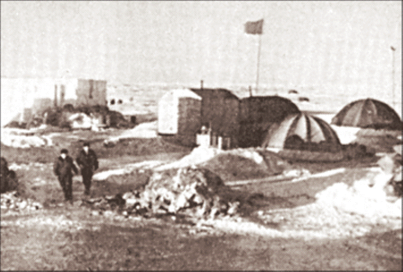 Осмотрев горизонт, мы заметили на расстоянии нескольких километров маленькие черные точки. Это был лагерь полярников. Желающих их навестить оказалось слишком много. Мне пришлось делать отбор - с учетом, прежде всего, занятости на вахте и опыта хождения по торосистому льду. Я сам таким опытом не обладал. В нашу делегацию вошло семь человек, остальные утешились футболом. Мяч гоняли по льду у самого борта корабля. Погода была хорошая - ветер небольшой, мороз всего минус семь градусов.