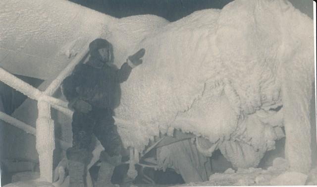 Ледокол) ведет старейший полярный капитан М. Я. Сорокин, под командованием которого «Ермак» в прошлом году поставил рекорд дальности плавания во льдах, дойдя до 83°4' северной широты и вывел в течение навигации 17 судов, зимовавших в Арктике.