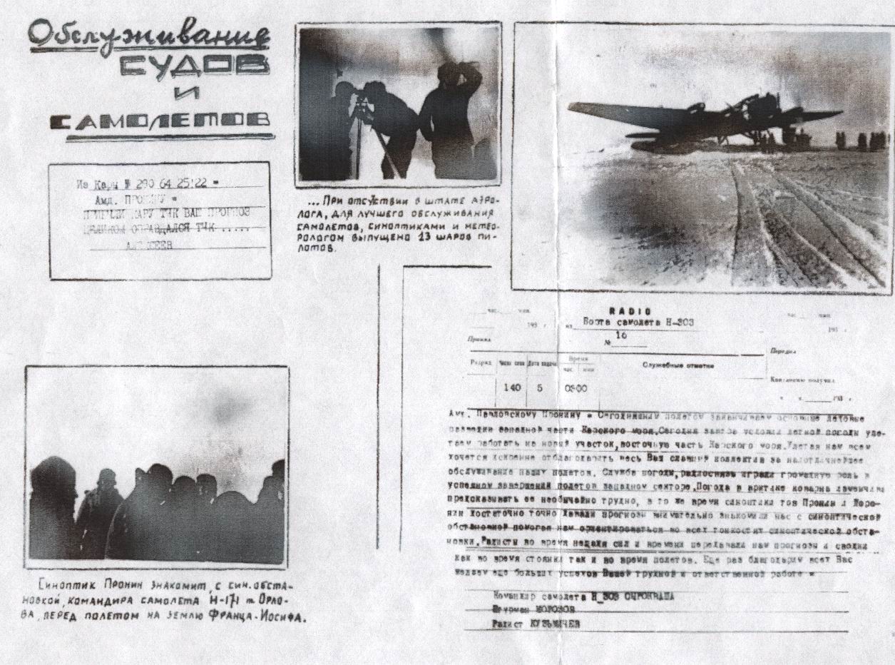 — Полярные летчики во время всей навигации должны подробно освещать состояние льдов вдоль трассы Северного морского пути, давая вместе с тем общую характеристику состояния льдов вдоль трассы. Ледовая разведка с воздуха — необходимое средство для обеспечения проводки кораблей Северным морским путем. От знания ледовой обстановки зависит успех дела.