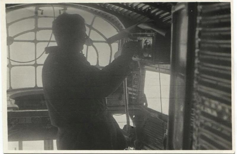 Аккуратов Валентин Иванович в штурманской кабине самолета Н-169