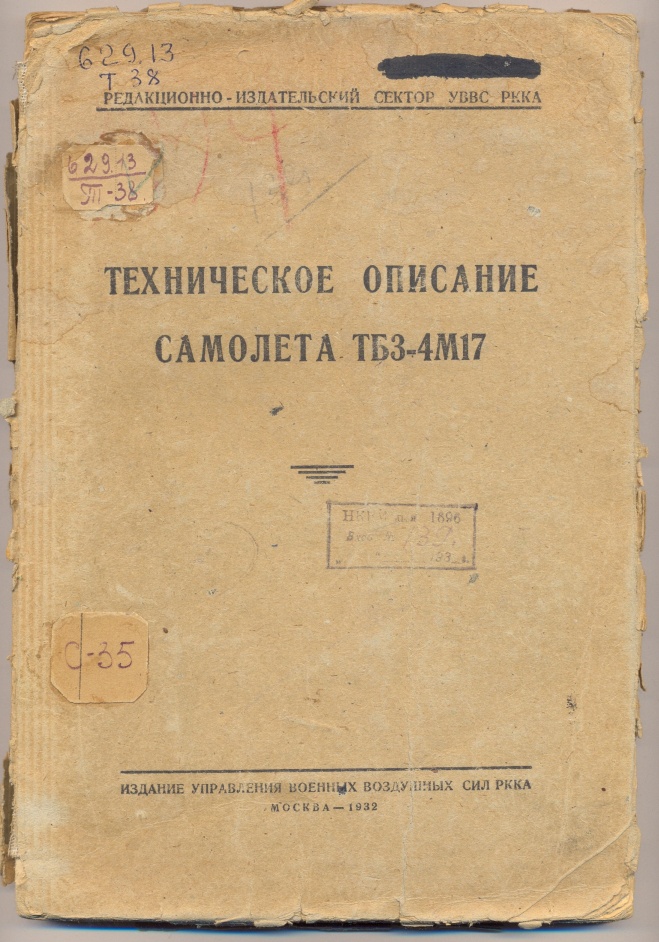 Техническое описание самолета ТБ3 - 4М17. Издание Управления Военно-воздушных сил РККА, М, 1932 г.