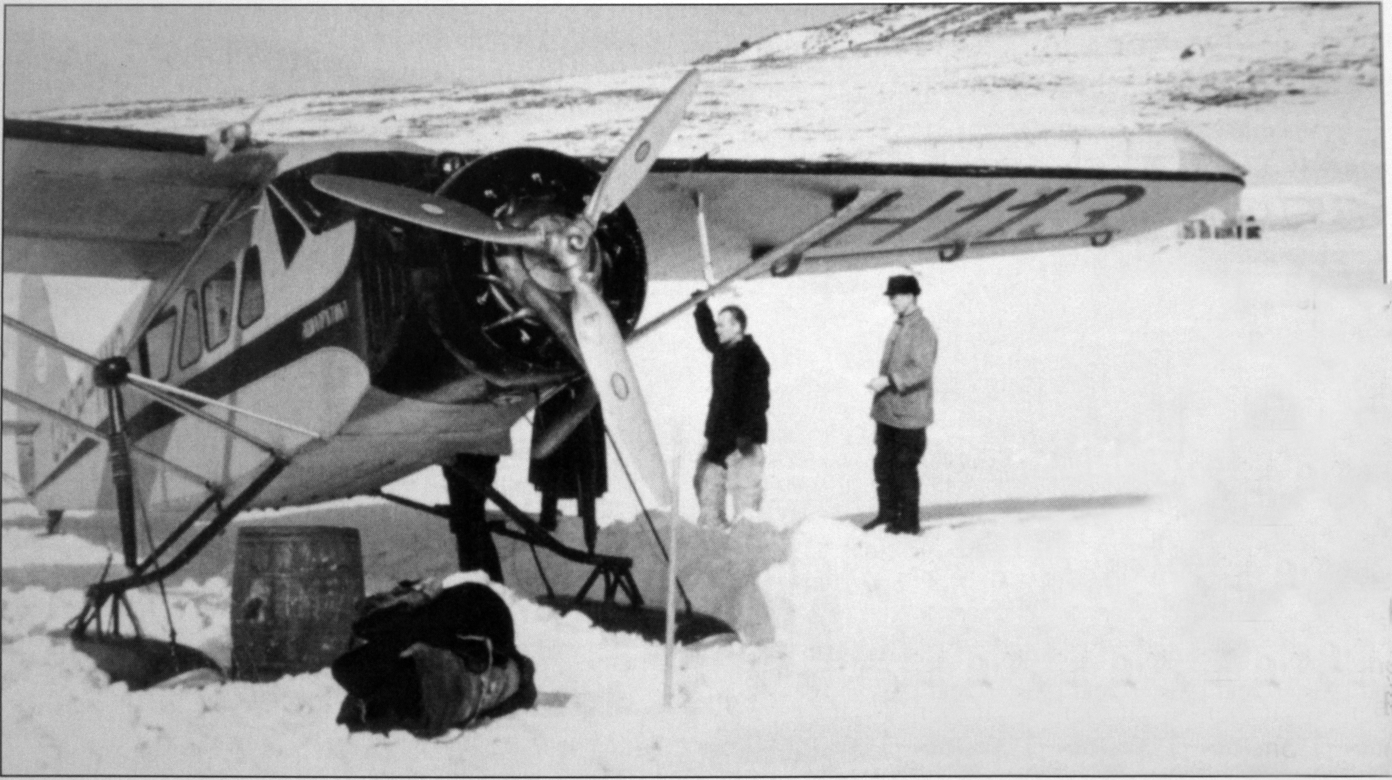 Юный Эндель Карлович (тогда просто Евгений) под крылом самолета на острове Рудольфа.