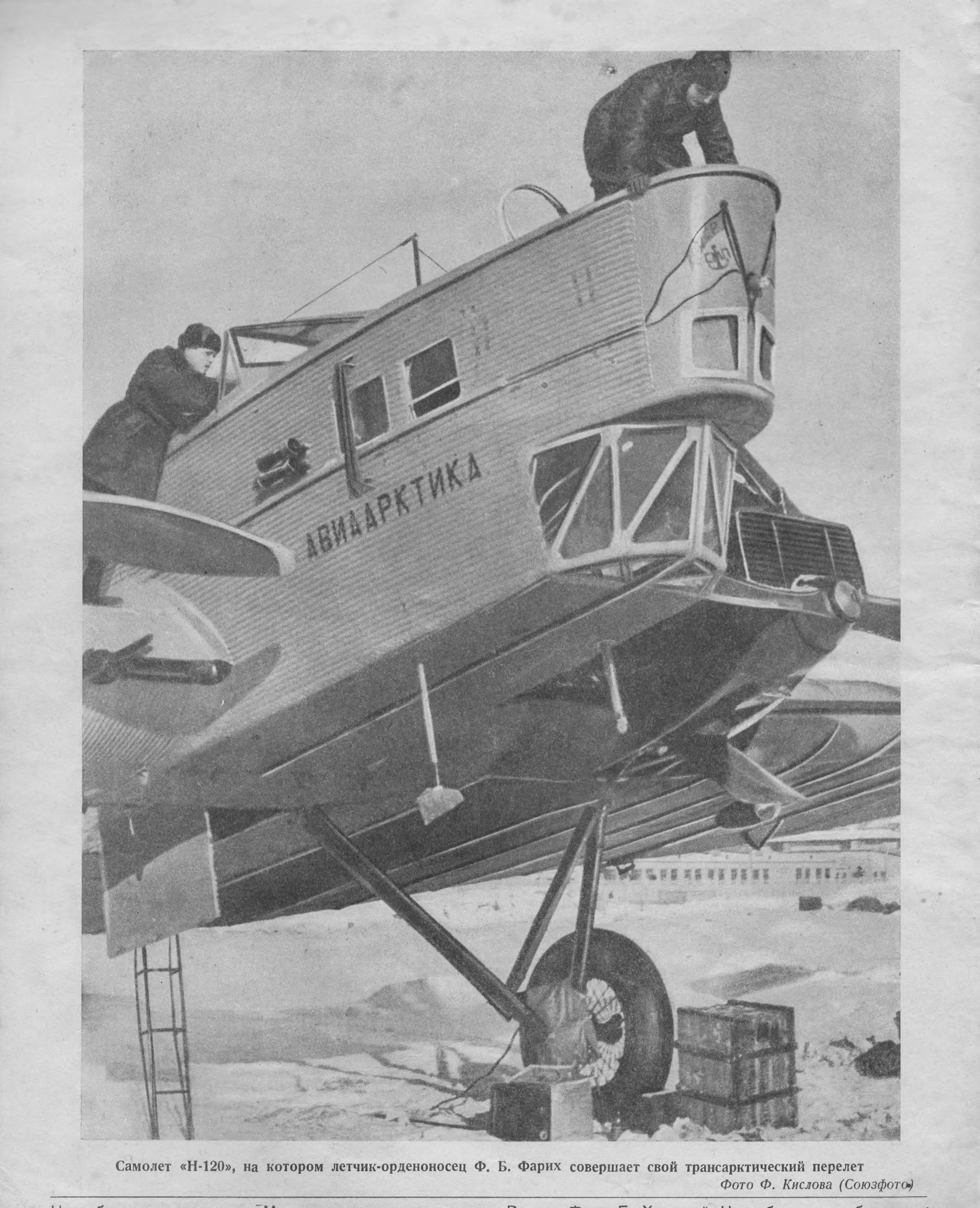 Материалы о перелете Ф.Б. Фариха на самолете Н-120 в 1937 году выделены в отдельную тему в разделе "Экспедиции":