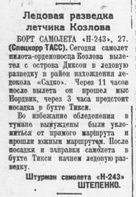 Dobrolet пишет:Видимо было два самолета - Перов погиб в 1942 году, при этом самолет (Н-243) затонул в бухте.