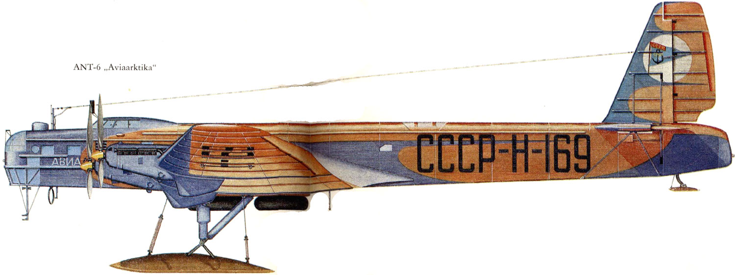 Хотелось бы внести уточнение. Обозначение АНТ-6 "Авиаарктика" для самолетов Н-169—172 появилось в книге Шаврова и с тех пор широко используется в литературе и в сети. Но надпись "Авиаарктика" мы можем увидеть на борту Дорнье-Валей, Р-6 (СССР Н-169) и даже послевоенных трофейных "Зибелей". То есть эта надпись означала только принадлежность к полярной авиации и ничего более. Потом ее заменили на "Полярная авиация"
