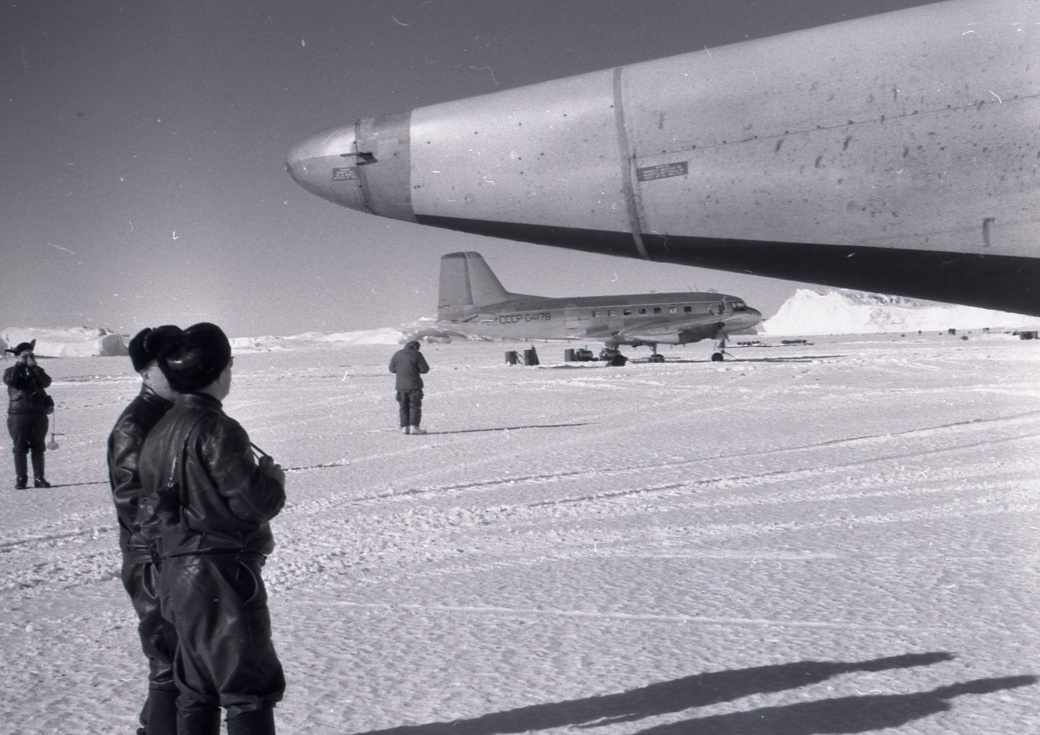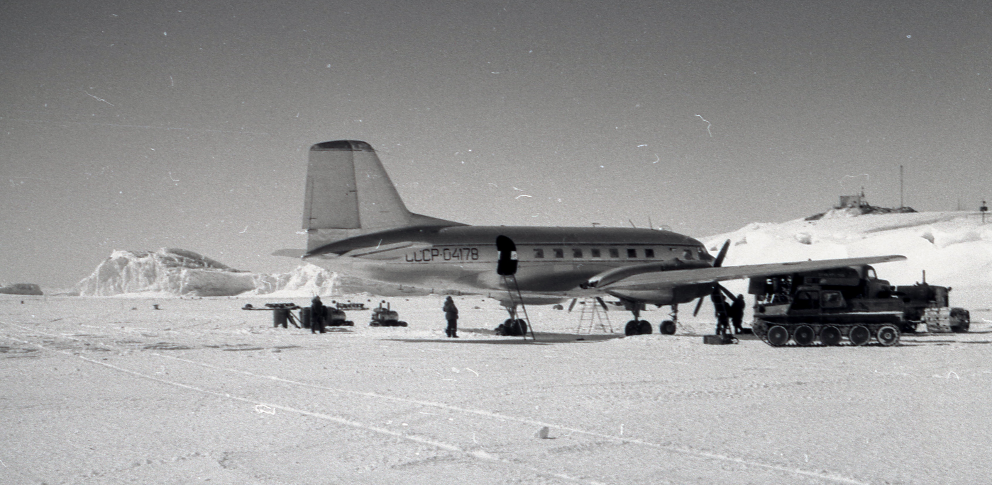 В архиве М.Г. Завьялова есть плёнка завёрнутая в обычную бумажку и подписано: "Американские гости". Завьялов был в Антарктиде в 6-й КАЭ 1960-1962гг. На ней наши полярники с удовольствием знакомятся с американскими лётчиками и осматривают их необычный самолёт. На этой же плёнке заснят и наш Ил-14 СССР-04178.