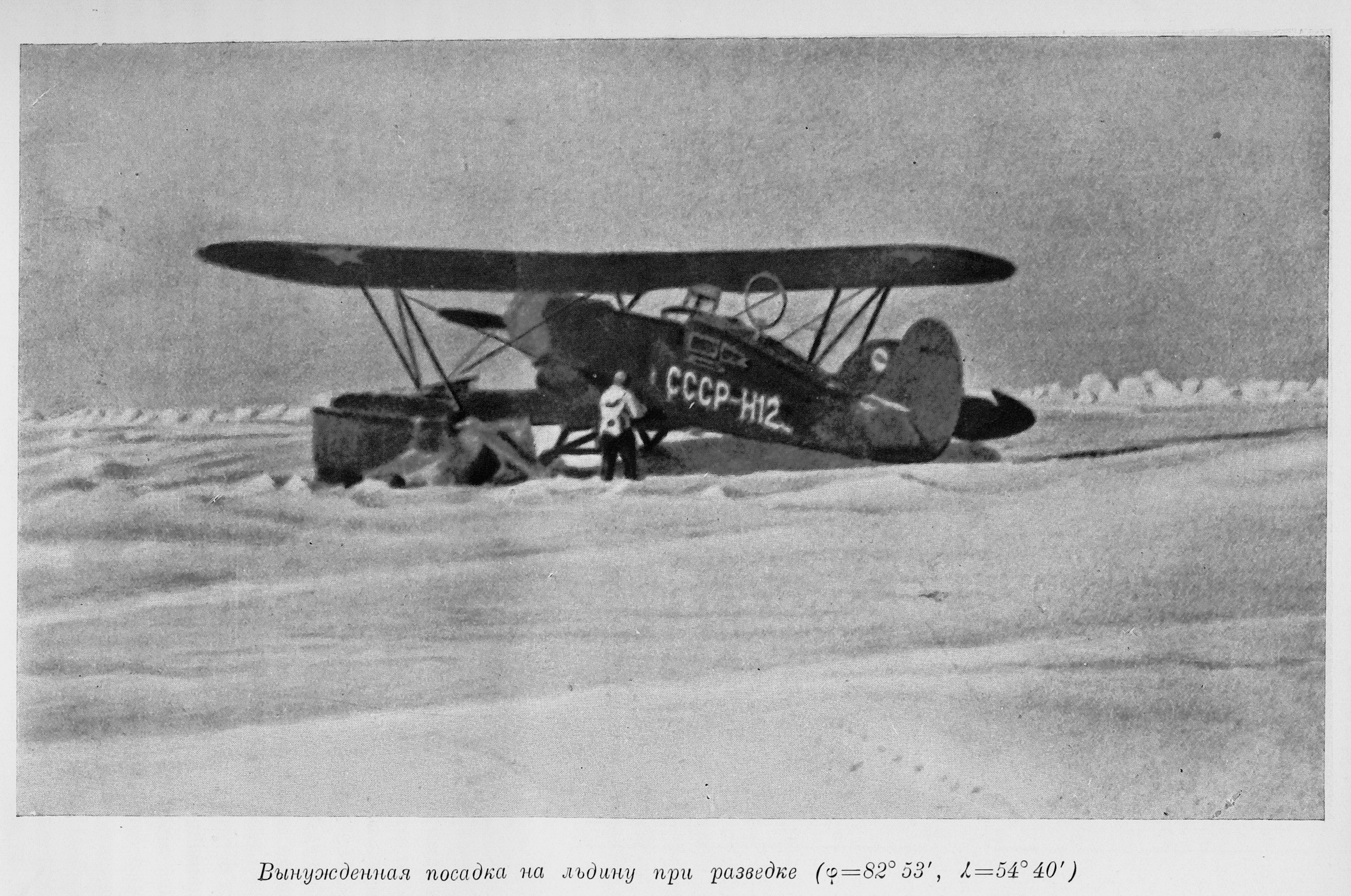 "Для получения хотя бы отрывочных, но все же фактических сведений о погоде из этих мест, в состав экспедиции, помимо основных больших самолетов, были включены три разведовательных самолета различной мощности и различного радиуса действия. Это был, во-первых, учебный самолет У-2 "Н-36" для зондажей и местных разведок; пилотировал его Я.Д. Мошковский, в любое время и любое количество раз производивший полеты с синоптиком. Второй самолет - П-5 "Н-128" с пилотом Л.Г. Крузе - предназначался для более дальних разведок; наконец двухмоторный самолет ПС-6 "Н-166" с пилотом П.Г. Головиным - для глубоких разведок. ...
