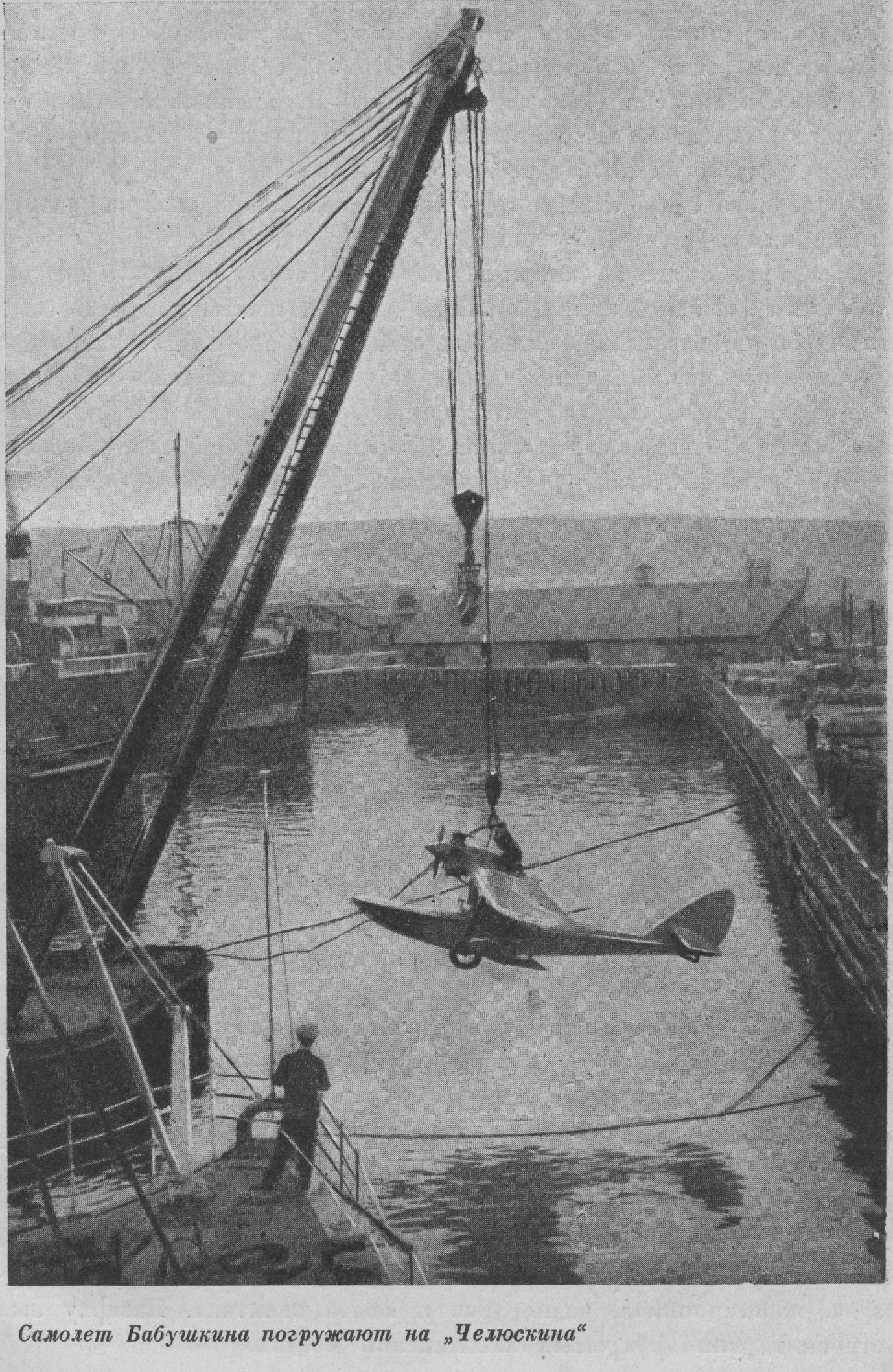 «» Самолет Бабушкина погружают на „Челюскина"