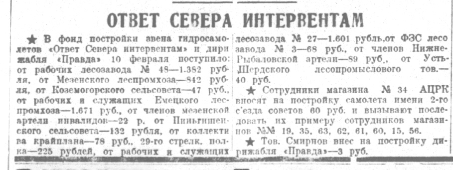 Ответ Севера интервентам//Правда Севера №69, 27марта 1931