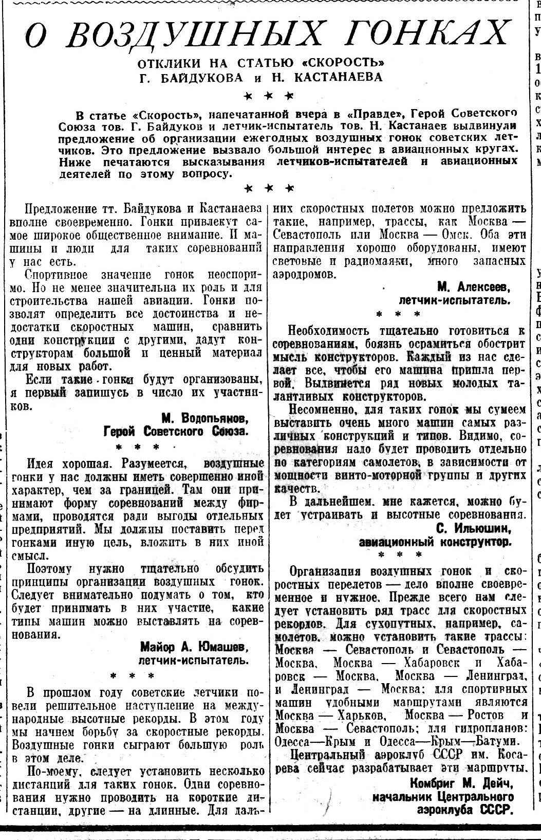 О воздушных гонках//Правда,1937,№ 38 (7004),8 февраля
