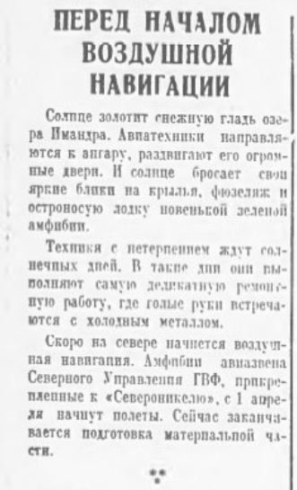 При Управлении арктической авиации Главсевморпути создан авиационный отряд особого назначения, возглавляемый известным (полярным летчиком героем Советского Союза тов. Молоковым В. С.