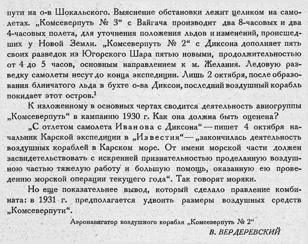 К изложенному в основных чертах сводится деятельность авиогруппы „Комсеверпуть“ в кампанию 1930 г. Как она должна быть оценена?