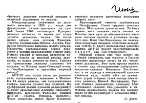 Вчера, в 7 часов 30 минут по местному времени, в очередной северный рейс на Якутск вылетел орденоносный экипаж самолета «Н-29» во главе с лётчиком тов. Черевичным.