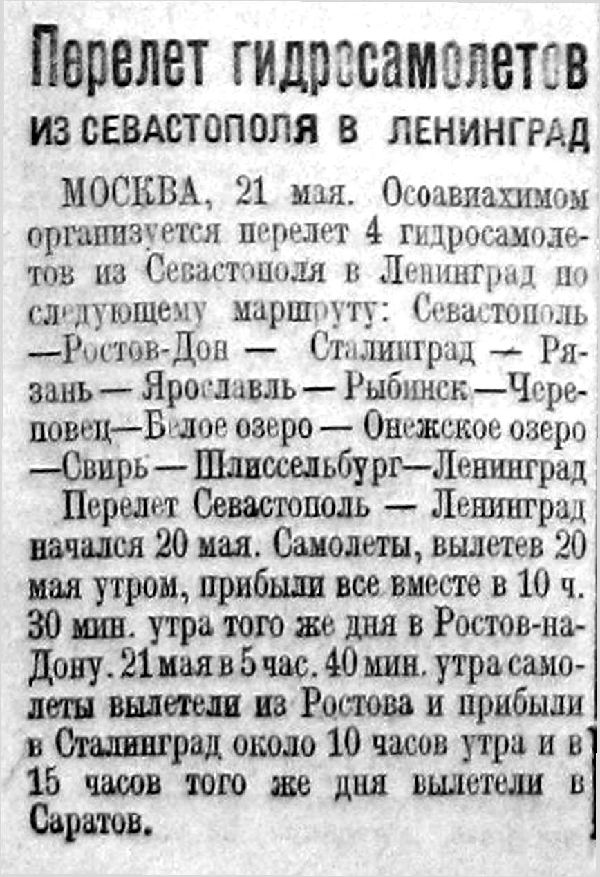 «Добролет» сообщает, что эти сведения неверны. И инициатива перелетов целиком принадлежала обществу «Луфт-Ганза». Общество обратилось к органам СССР с просьбой разрешить ему перелеты и к «Добролету» — за оказанием содействия, «Добролет» никаких предложений «Луфт-Ганза» не делал.