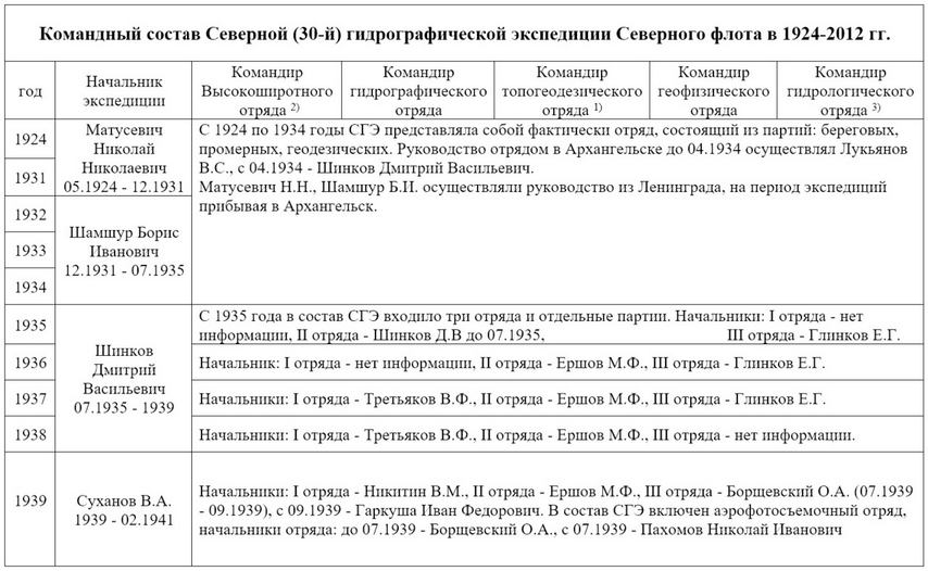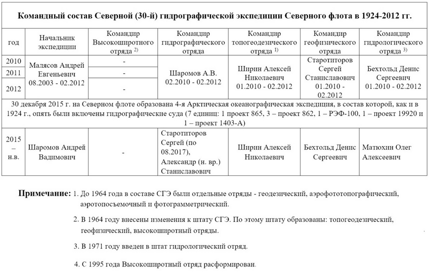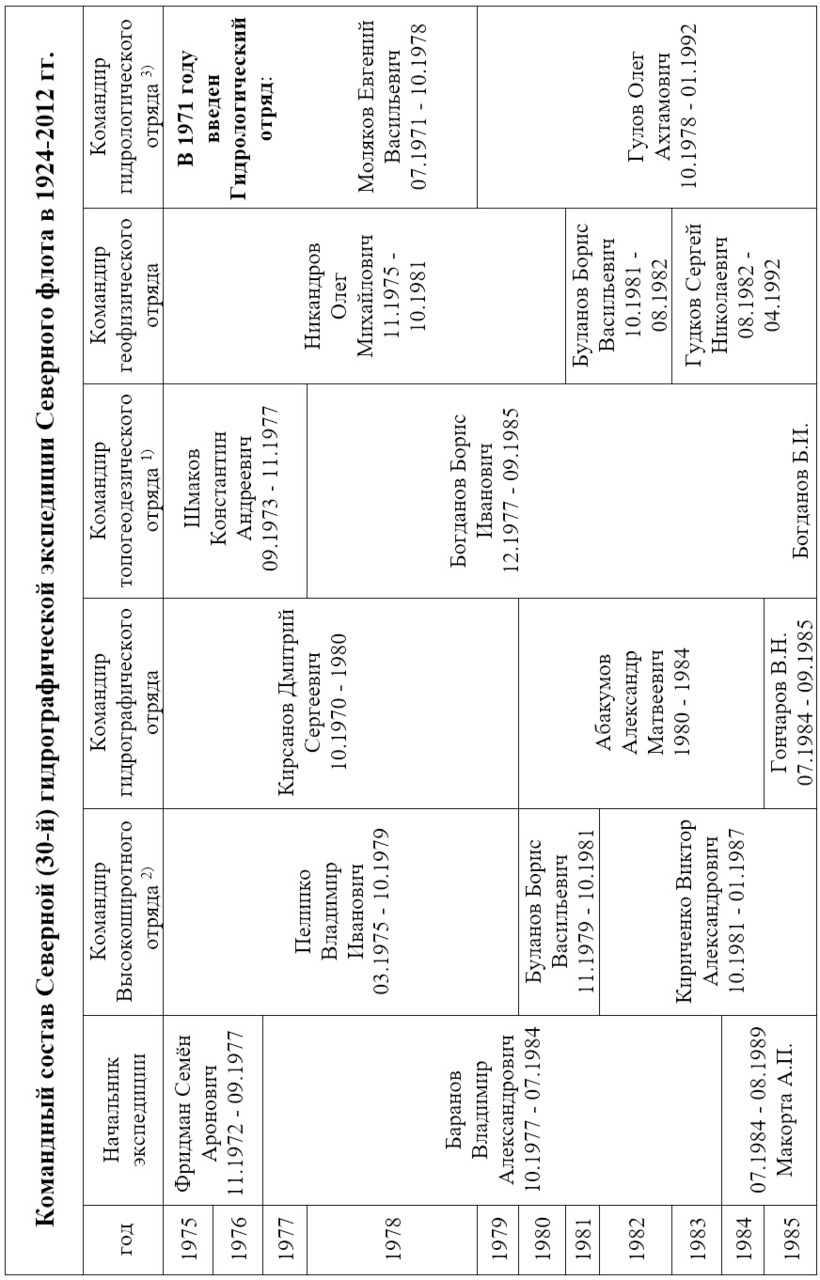 Командный состав Северной (30-й) гидрографической экспедиции Северного флота в 1924-2012 гг.