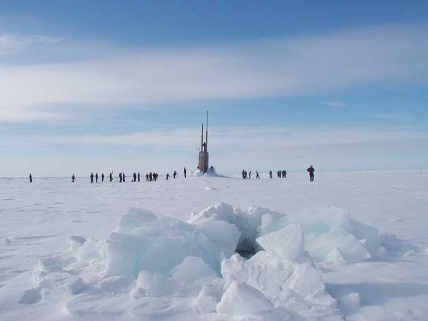 В 1957 г. АПЛ «Наутилус» пересекла подо льдом Северный Ледовитый океан. Вслед за тем многие американские и английские АПЛ ходили к полюсу и в проливы Канадского арктического архипелага. Испытывали себя в различных условиях полярных морей. В пoдлeдныx плаваниях в Чукотском море в 1993 г. участвовал вице-президент США А. Гор. В 1995—1999 гг. с помощью АПЛ отрабатывалась специальная программа изучения «подледной Арктики»9.